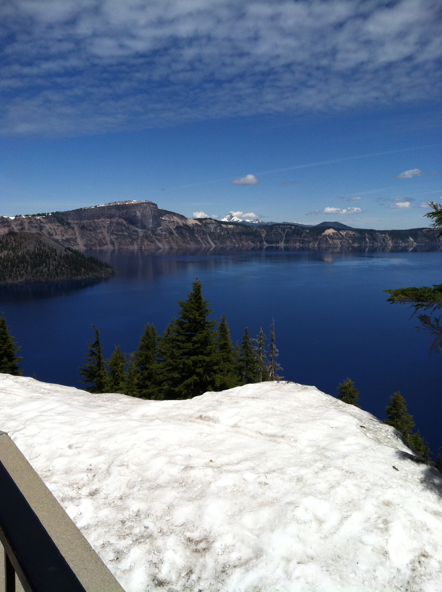 Crater Lake. 1943 feet deep and the purest water on earth. The ranger told us that this year they only had 22 feet of snow when the average is 44′. The Rim Road was still closed so we enjoyed lunch at the lodge and a stroll along the south rim.