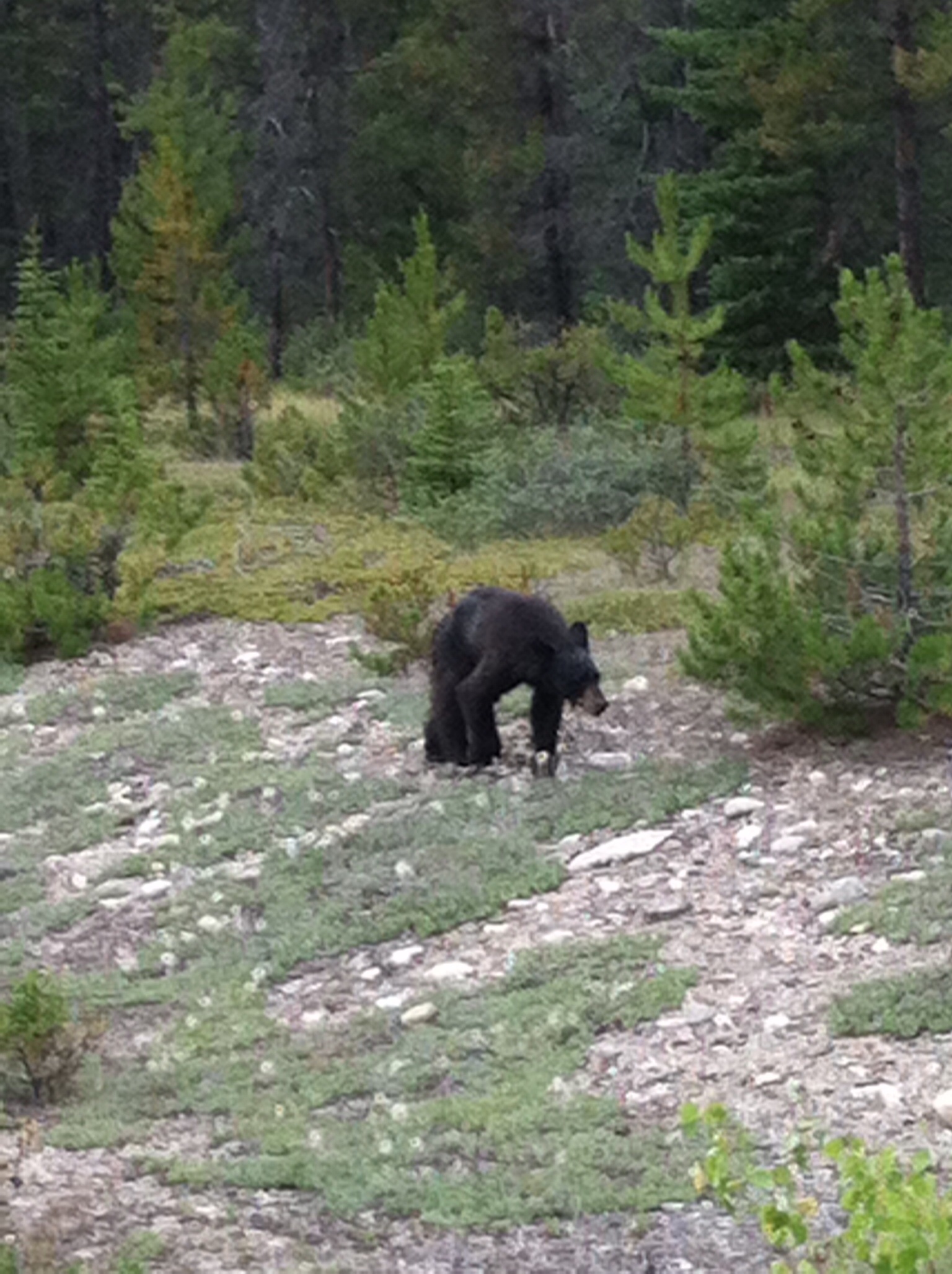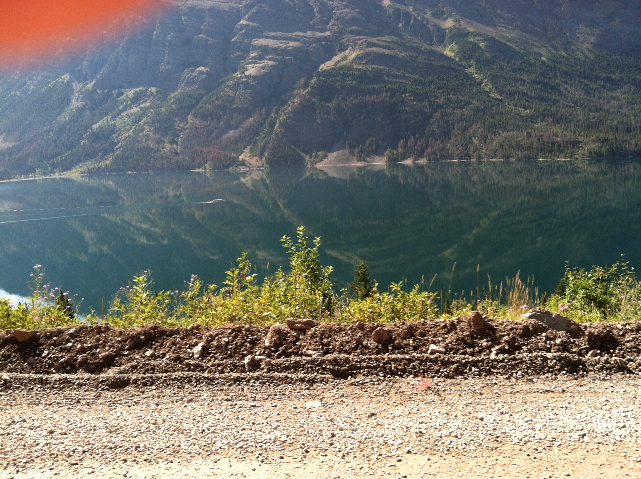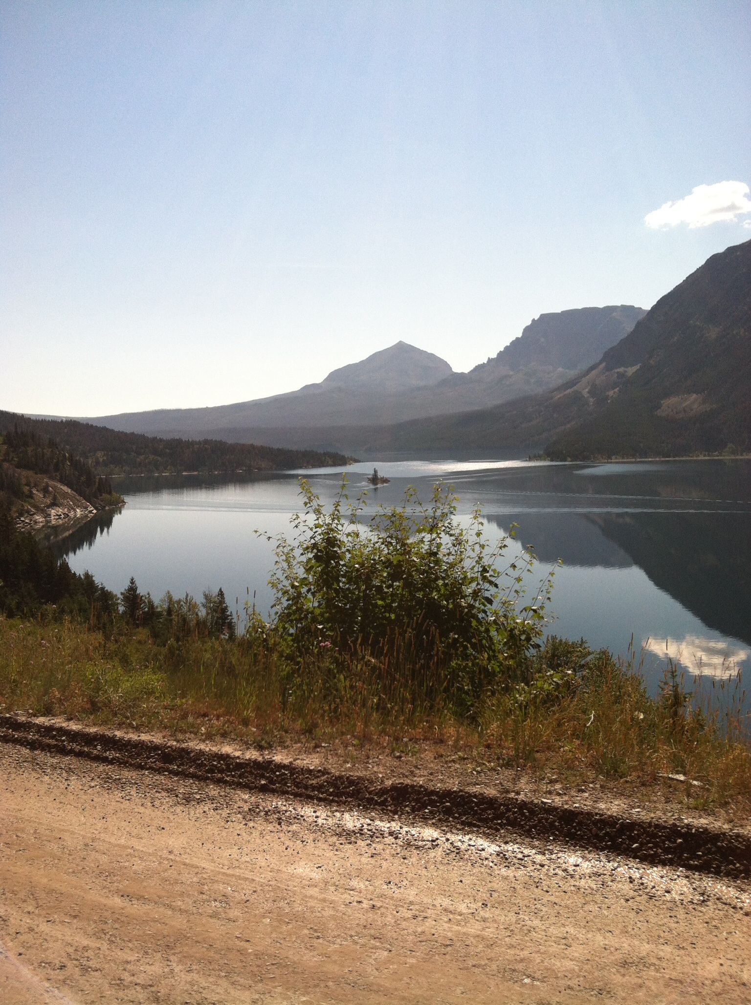 This is St. Mary’s lake near to where we are camped. This morning it was more like a mirror than a lake. The tiny spot above the shrubbery is Spirit Island, the most photographed place in the park.