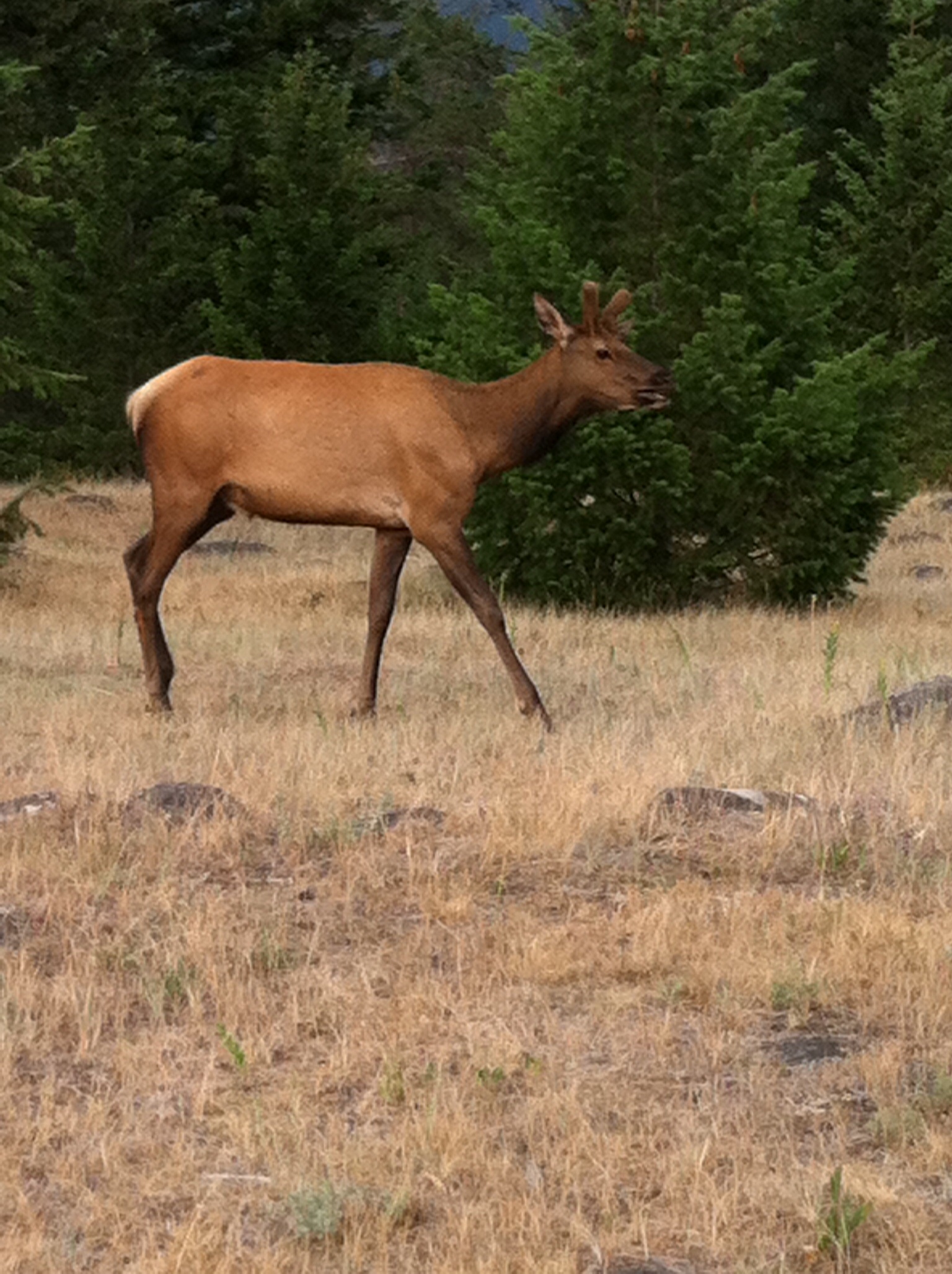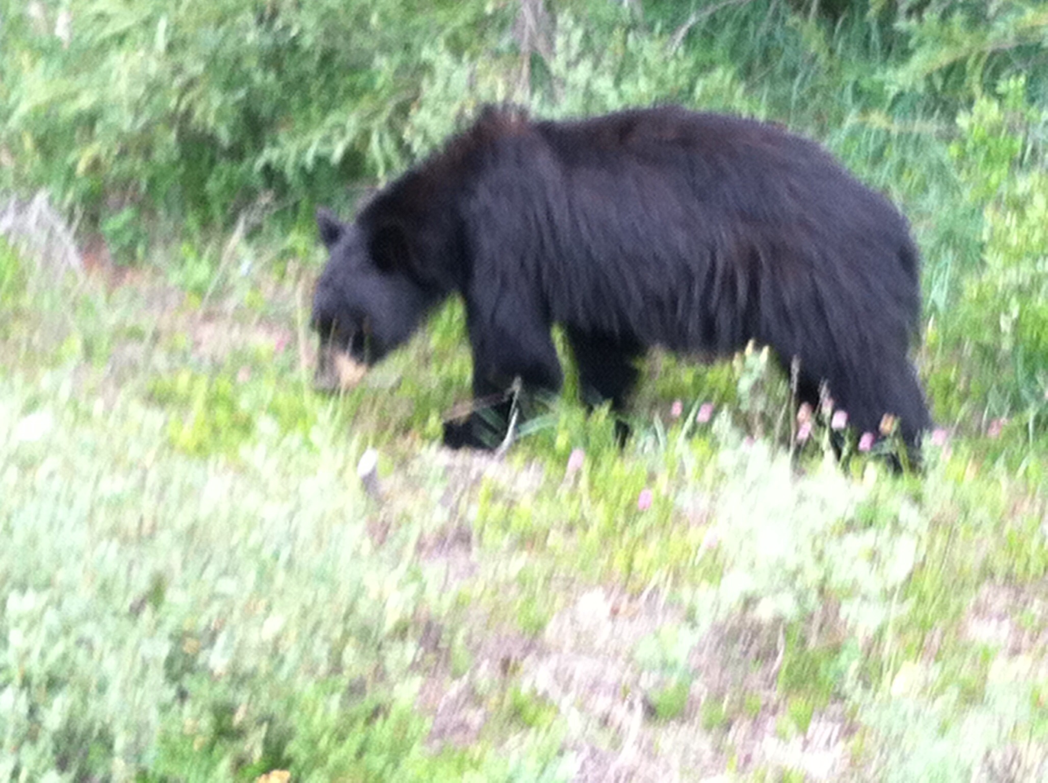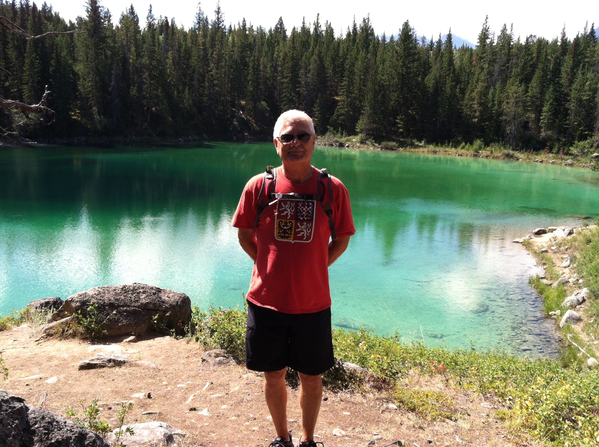 This is St. Mary’s lake near to where we are camped. This morning it was more like a mirror than a lake. The tiny spot above the shrubbery is Spirit Island, the most photographed place in the park.
