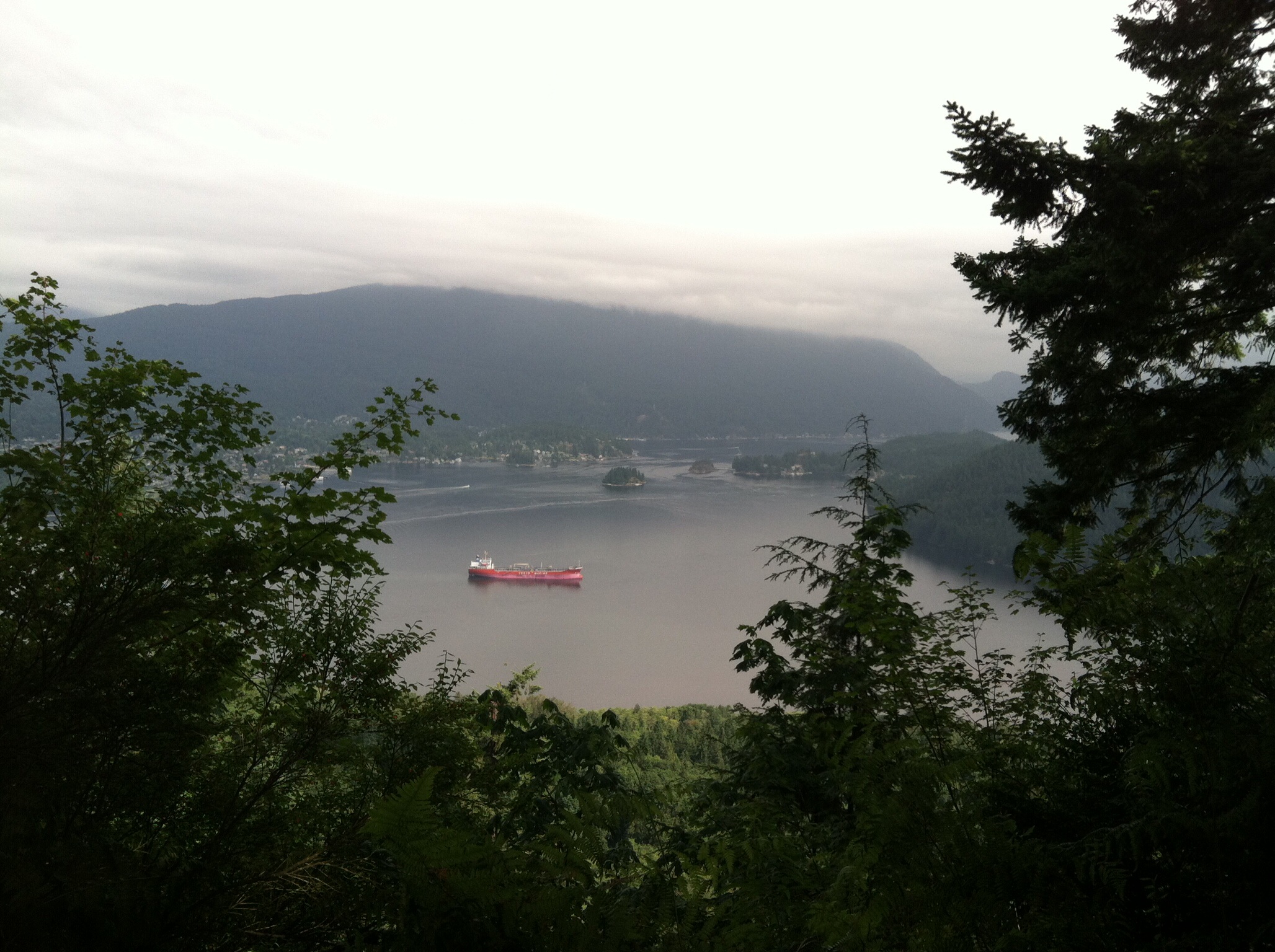 Ignoring my finger at the top, this is a neat view of one of the barely visible old tourist boats motoring through the still waters.