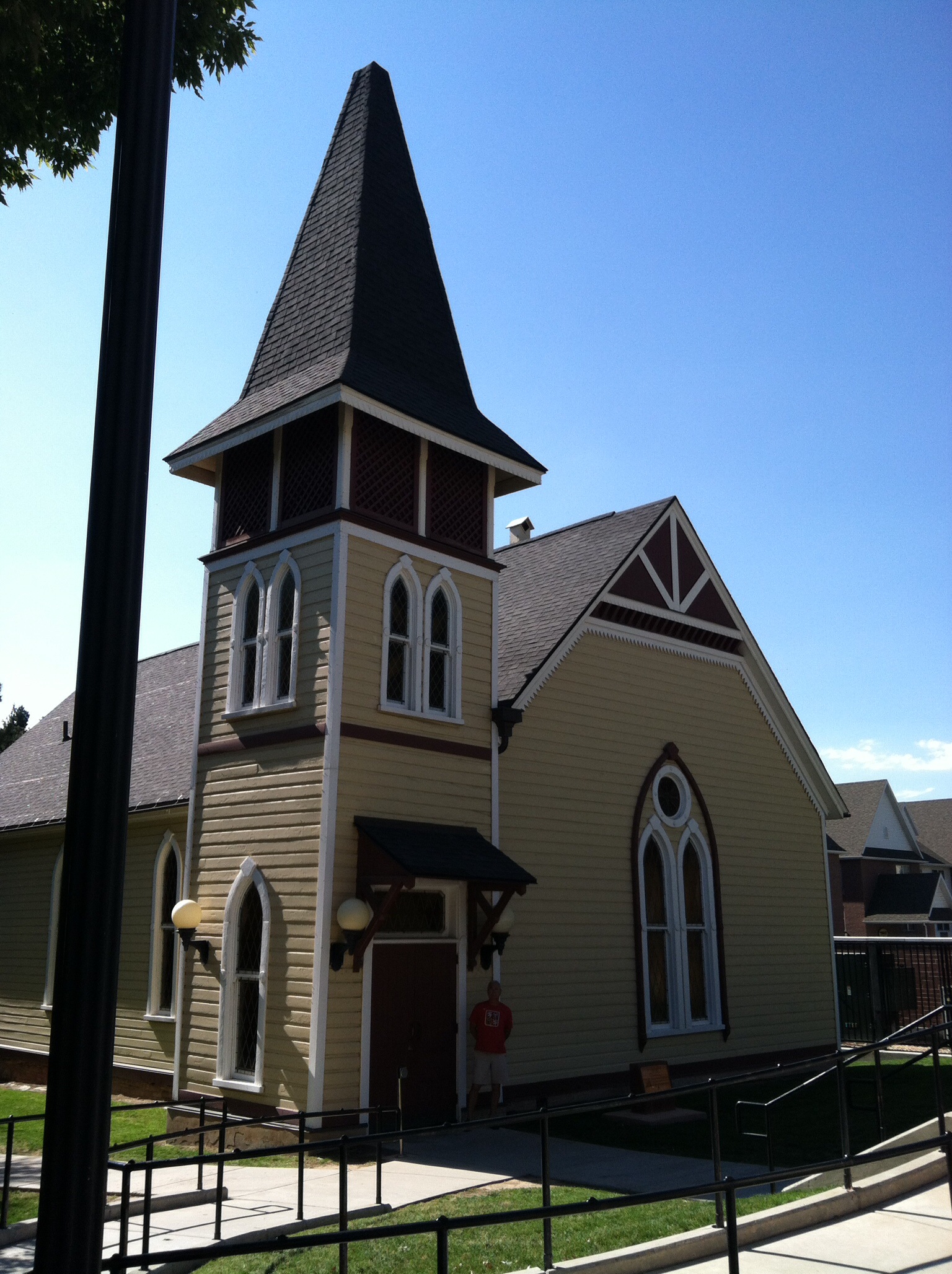 Years ago my dad started sleuthing through the old buildings at Fort Douglas. He found things like old playing cards, button, bottles and other discarded stuff. Because he wanted to preserve the Fort from the encroachment of the University of Utah, he started a museum detailing the history of the military in Utah and he worked hard to get many of the old historical buildings on the National Historic Register. Because of this, after his death, the military named the museum building in his honor. Outside there is a nice little park with various pieces of equipment like this howitzer that Mark was responsible for aiming during his stint in the army. The Post Chapel is where we were married so very long ago. It has been “updated” to include green carpeting and removal of the pews, and the original slate roof is gone, but it still stands! Next we are off to Southern Utah!