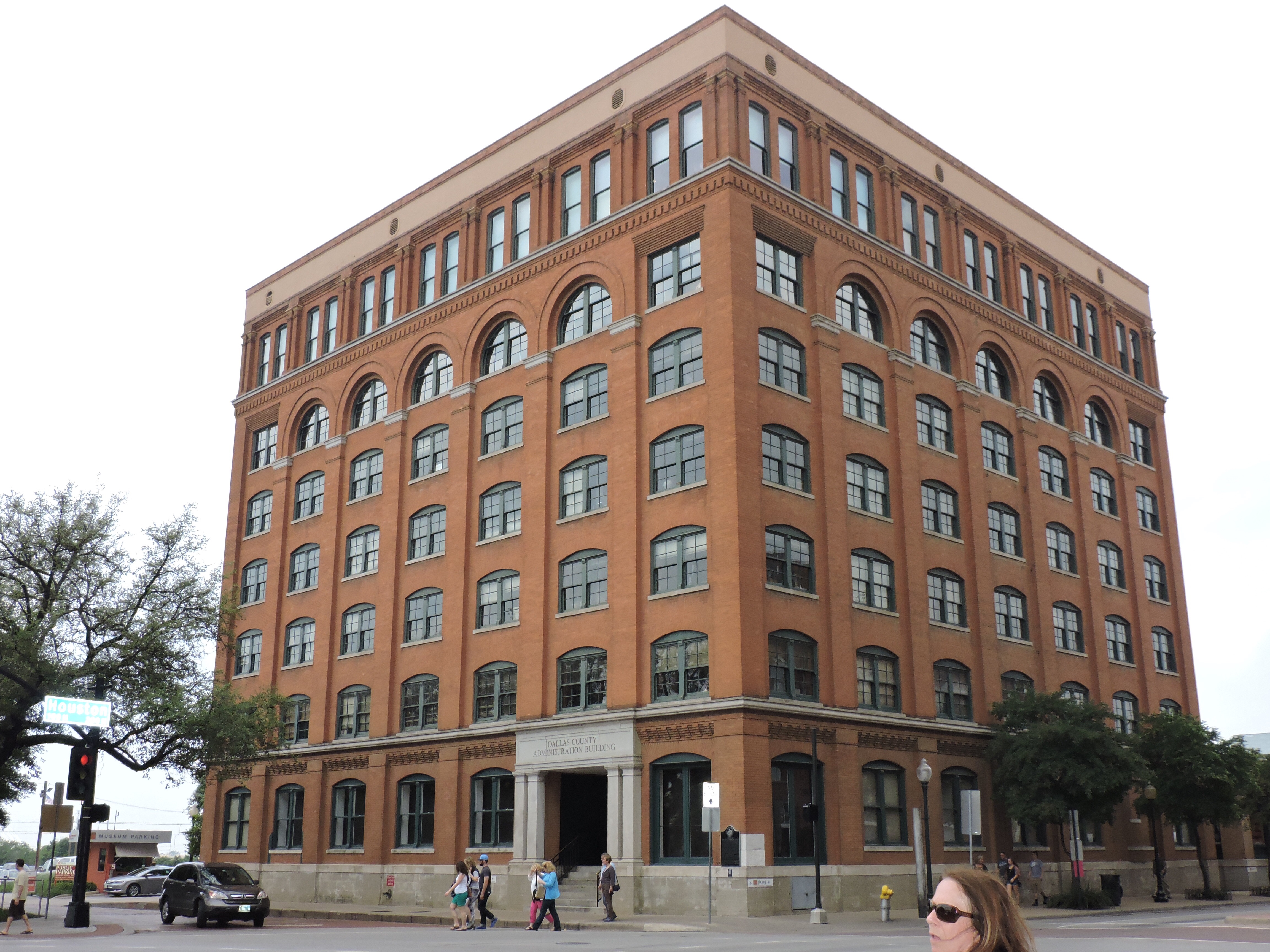This building needs no explanation. It is the book depository from which JFK was assasinated from the sixth floor above the white door.