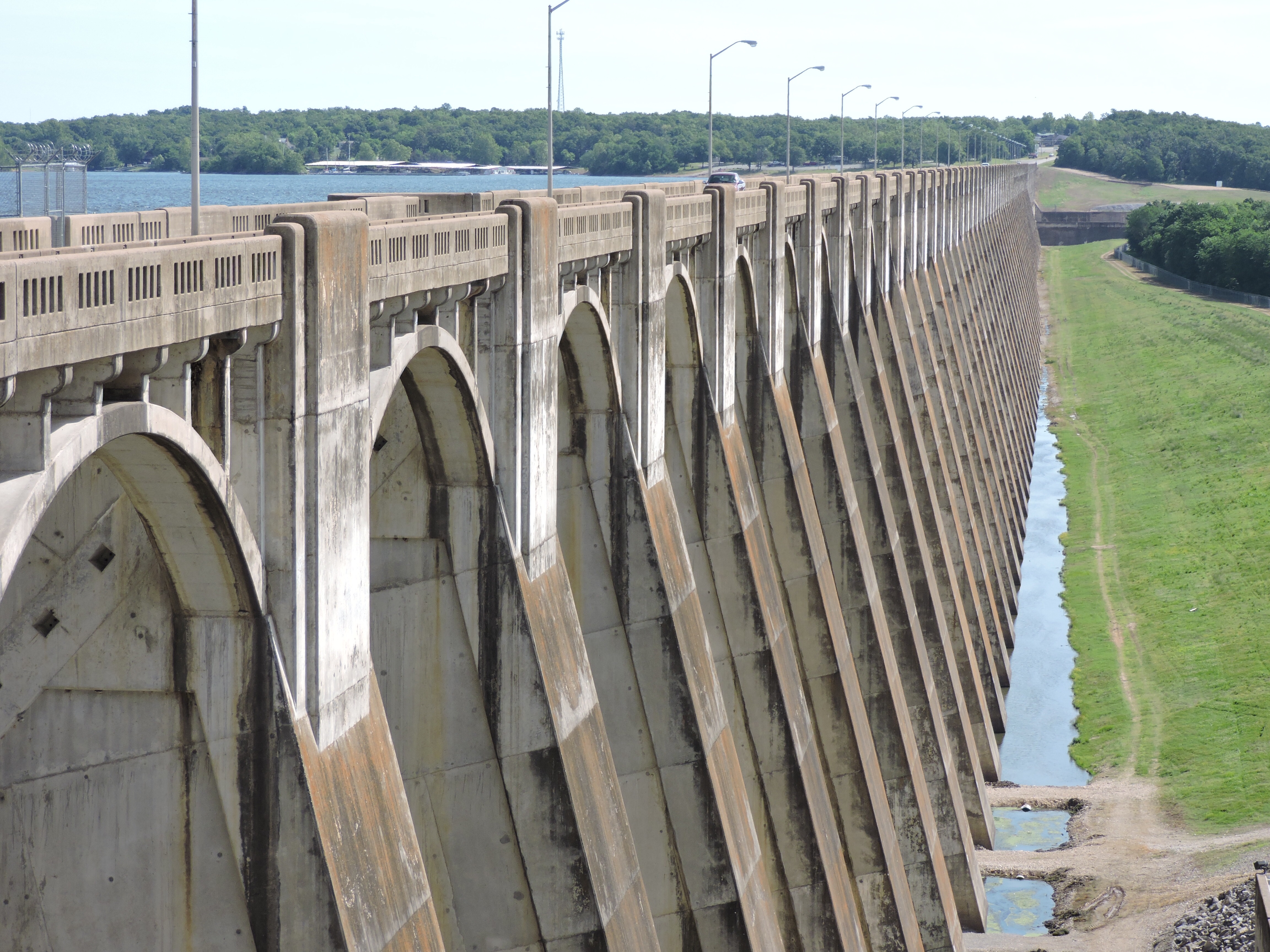 Well, the pictures loaded backwards this time. A continuing learning curve! However, Oklahoma! Why would we go there you may ask. Because of Linda and Earl Matthews. Linda was a sorority sister way back when and we have kept in contact for almost 50 years. They visited us in NC, so we treated ourselves to seeing them again. Earl is one of the nicest guys alive and he arranged for us to see this incredible dam with a class of third graders. Felt like I was back helping Emily with her class. Anyway, this dam is a mile long and has unusual arches in it’s structure. The generators live below the dam and empty out into this prime fishing area. Behind the dam is a lake with over 1300 miles of shoreline. We drove past it for two days.