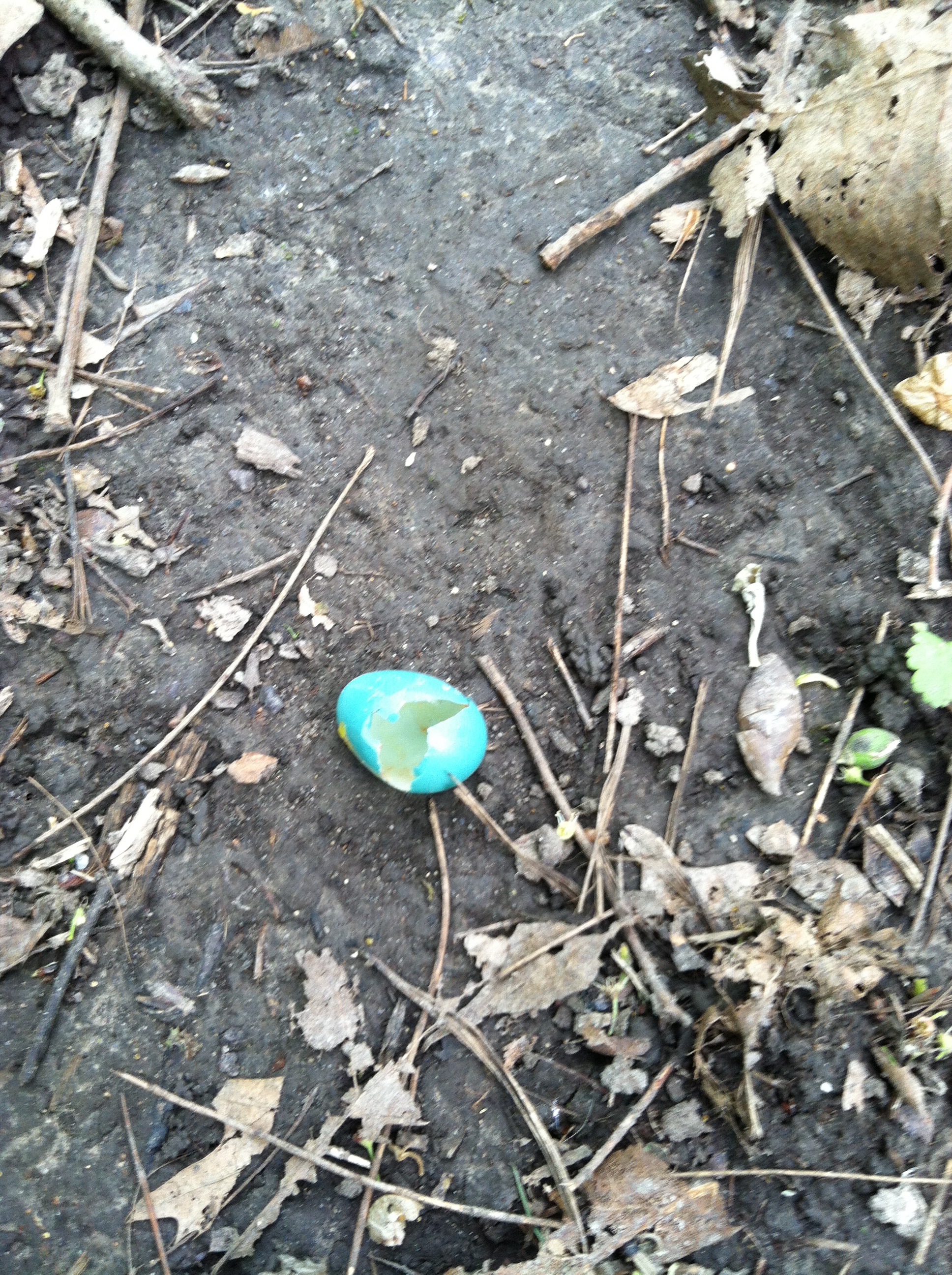 I don’t know what I am doing differently with these photos, so bear with me. We took old Hoover for a walk in the woods and through the meadows. Along the way we saw some Jacks-in-the-Pulpit, and this robin’s egg. Hoover ranged far ahead of us and at one point flushed some deer. What a great time, yes, in the wind and rain.